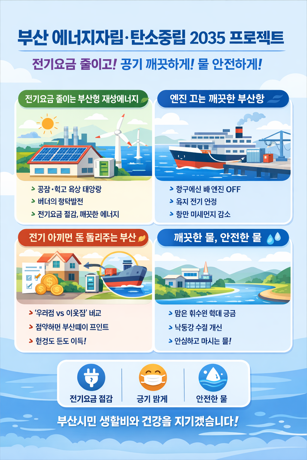 첨단 신산업 메카 부산 도약: 압도적인 에너지 비용 경쟁력을 바탕으로 데이터센터 및 첨단 기업을 유치하여 부산을 신산업의 중심지로 만듭니다.